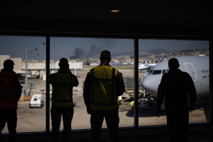 A Dutch military Airbus A330 takes off, heading for Lebanon on Friday morning 4 October. Dutch nationals who have been contacted for repatriation have gathered at Beirut International Airport. They are received by staff from the embassy and the Rapid Deployment Consular Support Team (SCOT). ‘We have a full team ready at the airport,’ says ambassador Frank Mollen. ‘We help people with the registration formalities to do with their departure from Lebanon and entry to the Netherlands.’ Elma Lucas, a member of the SCOT, adds: ‘Lots of people are clearly relieved, but the relief is mixed with sadness. Hats off to everyone who is working so hard today to help them.’