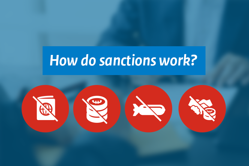 Sanctions are measures taken against countries, organisations or individuals, to show them that we do not condone actions that are at odds with international agreements. Such actions include aggression towards other countries, violation of human rights or the proliferation of nuclear weapons. There are different types of sanctions: