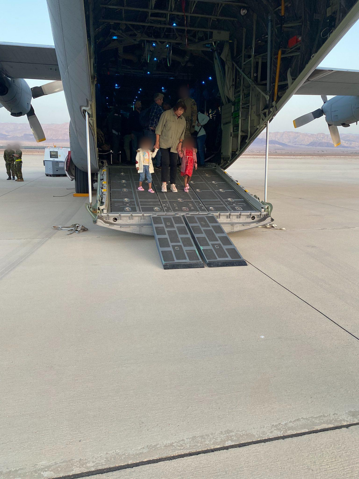 Ambassador Irma van Dueren and SCOT’er are on their way to a plane in Aqaba that will pick up evacuees from Sudan.