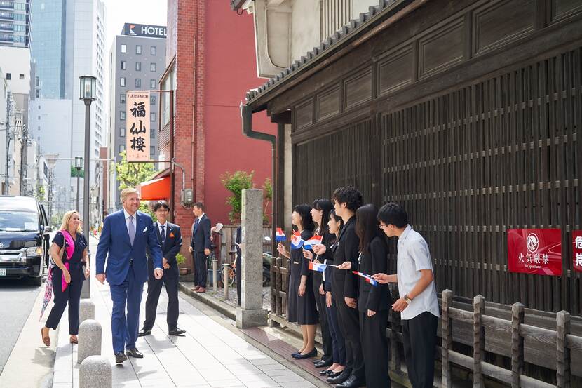 Later that day, 22 May, the royal delegation visited Tekijuku, one of the most important Dutch-language schools in Japan. Until well into the 19th century, Japanese students studied Dutch there to access Western books. The presence of the Dutch in Japan offered a rare window to the rest of the world. Through Rangaku (Dutch Studies), the latest knowledge in fields such as medicine was introduced to Japan. Today, Tekijuku is part of Osaka University, where last year a new medical cooperation agreement was signed between Japan and the Netherlands. The King also visited Nakanoshima Qross, a new hub for research into the future of healthcare.