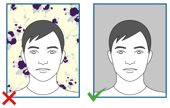 If you keep your head covered because of your religion or belief, then you may keep your head covering on for your photo. The head covering must be plain, in one colour only, and must also contrast with the background.